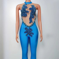 จั๊มสูทเข้ารูปตาข่ายซีทรูเซ็กซี่สำหรับการแสดงบนเวทีชุดจั๊มสูทเชือกแขวนคอแฟชั่น AD2613